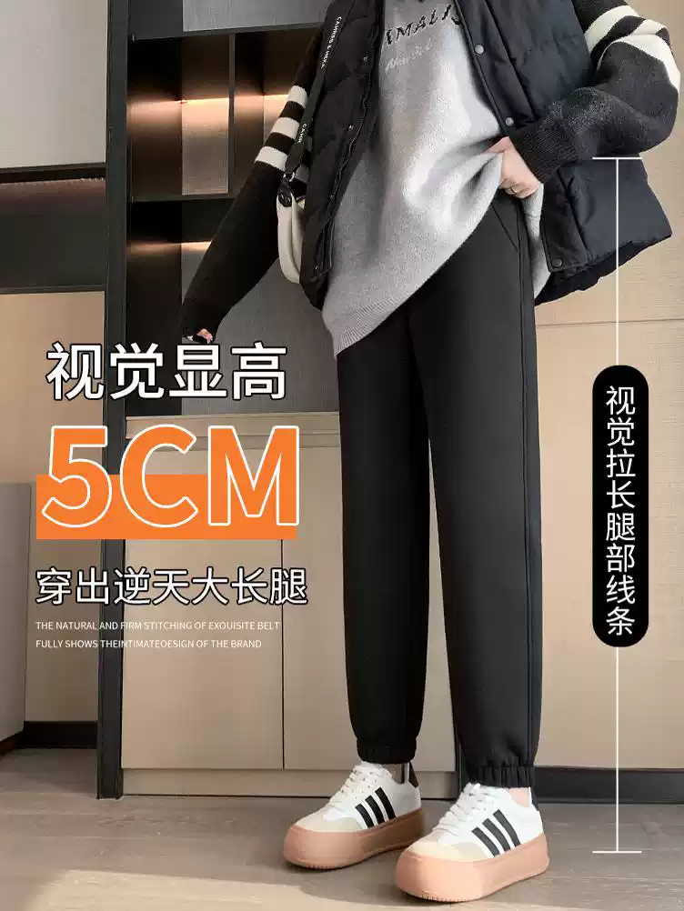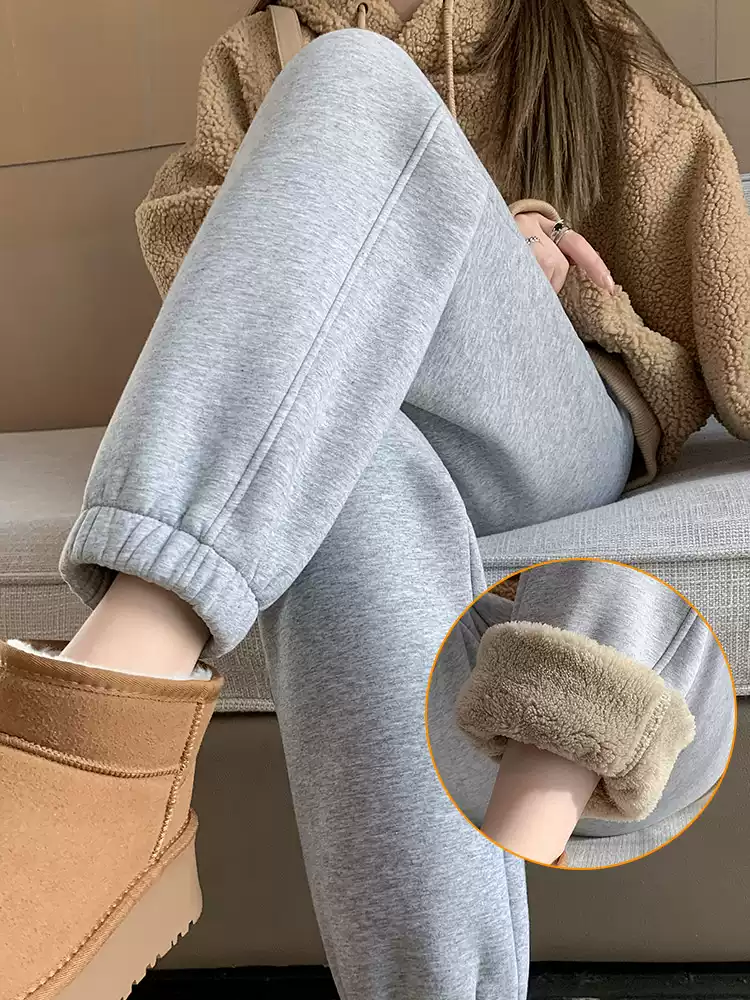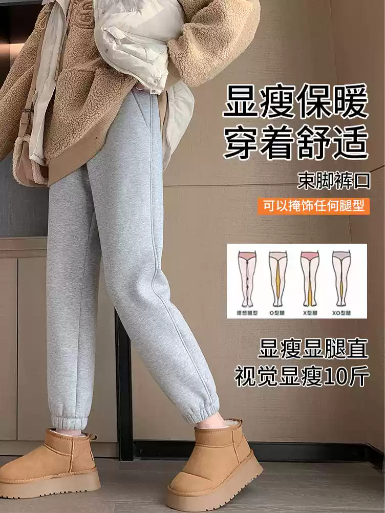 加绒运动裤女秋冬2025新款加厚灰色卫裤高腰束脚冬季羊羔绒棉裤子