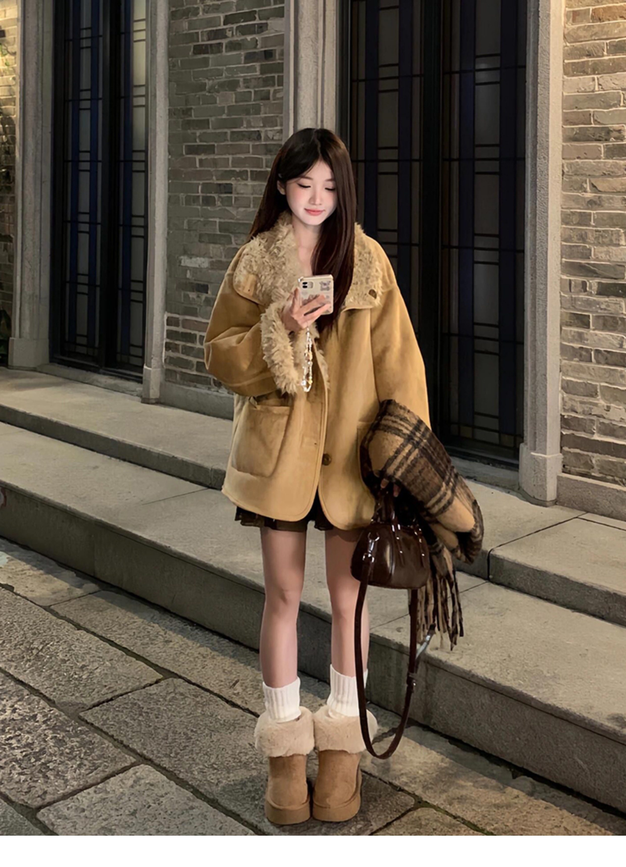 2025冬新款两面穿羊羔毛外套女中长款皮毛一体机车服加厚保暖大衣