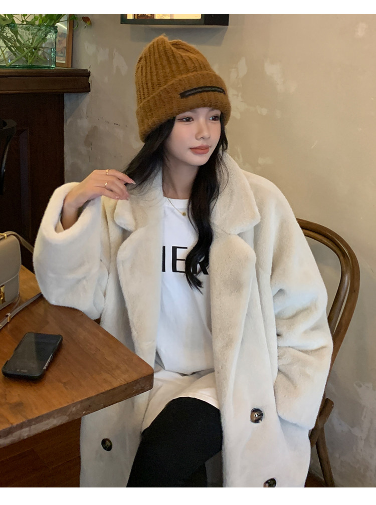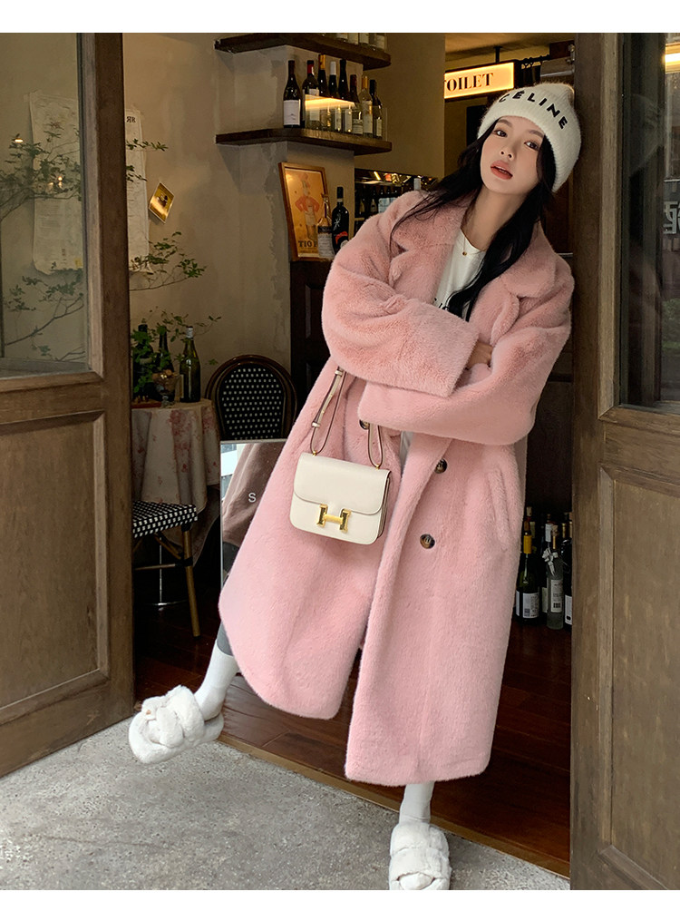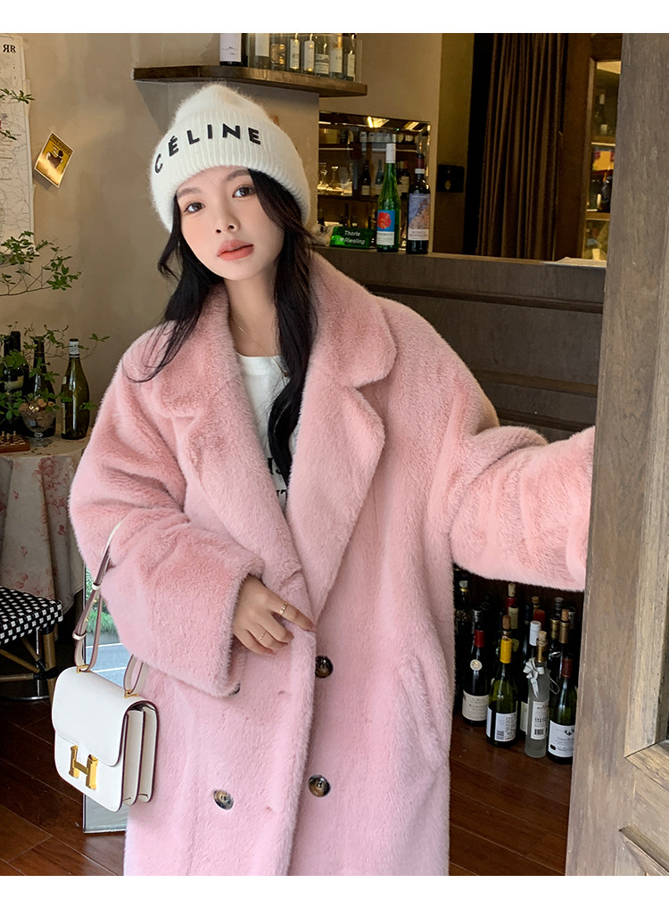 冬季环保皮草仿水貂绒长款宽松加厚皮毛一体西服领毛毛外套大衣女